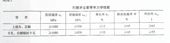 1、撈矛接頭、芯軸、卡瓦等主要零件力學性能表如下: