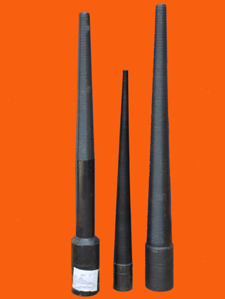 公錐是一種專門從油管、鉆桿、套銑管、封隔器、配水器、配產器等有孔落物的內孔進行造扣打撈的工具。這種工具對于帶接箍的管狀落物,打撈成功率較高。公錐與正、反扣鉆桿及其他工具配合使用,可實現不同的打撈工藝。